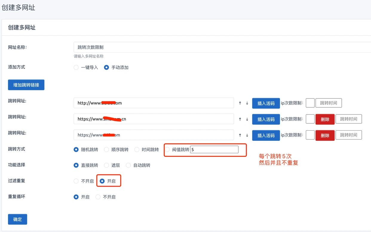 同时除了小月短链接有这个功能之外,小月活码也具备有相应的功能。随机访问ABC页面,但是A页面访问5次之后就不会在访问A,只访问BC页面。